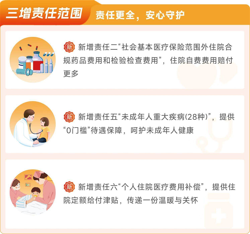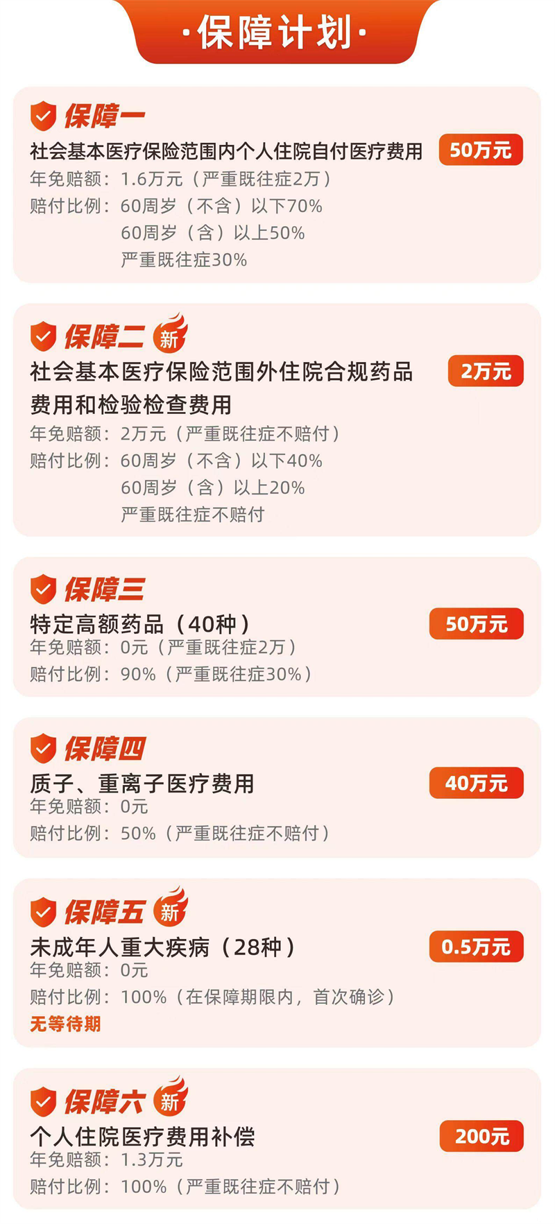 2026年“清远惠民保”延续了不限年龄病史、参保门槛低、医保个账全家保、本市就医出院即结算等优势,并在原产品基础上进一步优化,保障范围涵盖“六大责任”,其中新增了医保范围外住院合规药品费用和检验检查费用、未成年人重大疾病保险责任、个人住院定额给付津贴,让参保人的保障范围更全面,进一步减轻群众医疗负担。