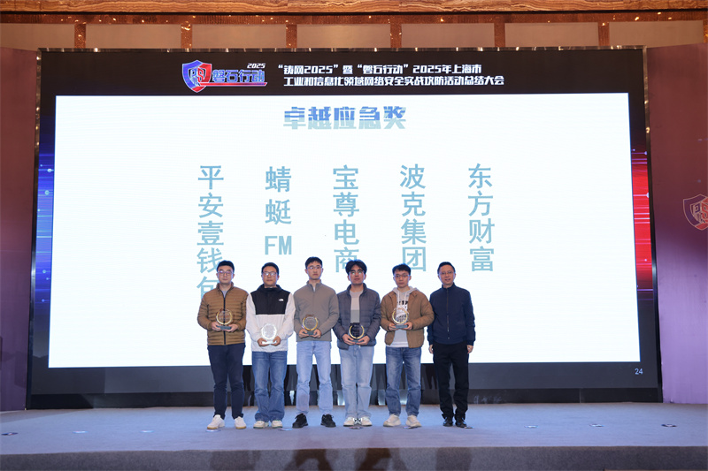 近日,上海市通信管理局联合市委网信办、市经信委、市公安局等共同组织召开“铸网2025”暨“磐石行动”2025年上海市工业和信息化领域网络安全实战攻防活动总结大会。大会通报总结了本次攻防演练成果,并对表现突出的单位予以表彰。平安壹钱包在为期10天的实战活动中防守表现优异,荣获“卓越应急”企业奖和“优秀个人”称号。