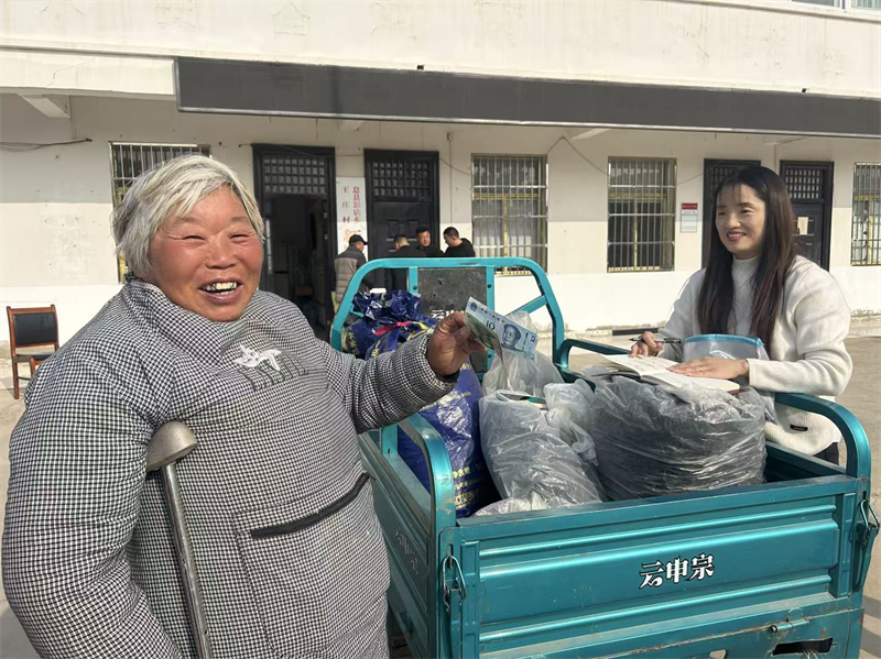 “前一回的货款结清了,这是上次的20元,您收好。这次带来的菜,我登记一下。”吴霞一边利落地在本子上记下菜名、斤两,一边将现金递到村民高明英手中。这已是高明英第三次托吴霞卖菜了。说话间,史清珍、崔长明、王芳等村民也接踵而至,小小的村部大院很快热闹起来。