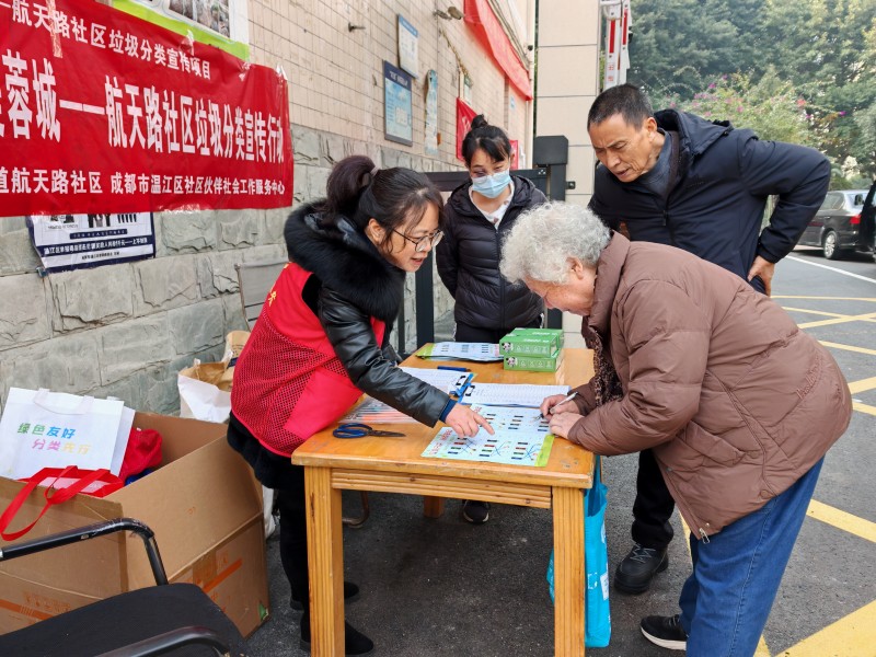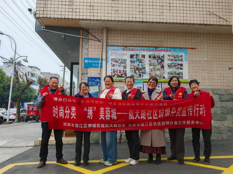 为积极响应垃圾分类号召,进一步提升社区居民对生活垃圾分类的知晓率、支持率和参与率,2025年12月中旬,成都市温江区柳城街道航天路社区联合成都市温江区社区伙伴社会工作服务中心组织开展时尚分类“绣”美蓉城——航天路社区垃圾分类宣传行动。