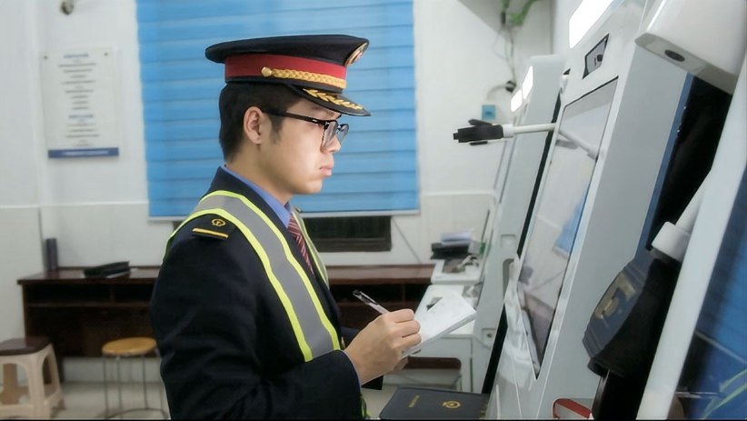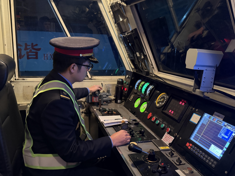 “限速3条……”只见他左手持运行揭示单,右手握住笔尖揭示单上滑行,逐字逐句核对行车数据,眼神专注而坚定,这份细致早已超越了一名新司机的青涩。