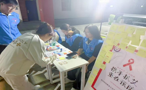 同学们积极参与社区“科学防艾,青春同行”活动。
