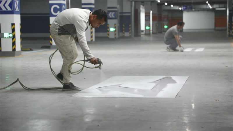 近日,在衢江区文体健康中心施工现场,地下停车场的标线作业正有序进行。工人们手持测量工具,沿着崭新的地面精准绘制停车区域,一道道鲜明的标线铺展开来。