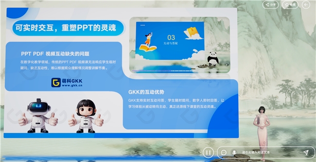 GKK引入的“可打断式讲解”机制,允许学习者在任意节点提出问题,并获得即时反馈。如果问题超出原始课件范围,教师或内容管理者可以在后台补充相关知识,从而扩展系统的应答能力。这一机制不仅适用于学校教学,也适用于企业培训、产品说明、内部知识传递等场景,使原本封闭的内容呈现方式具备持续演进的可能性。