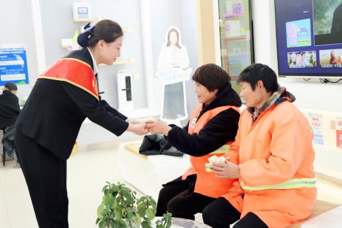 除了共享美食,营业厅工作人员在为老人们讲解“数九”冬至习俗、活跃文化氛围的同时,将温暖向外延伸,为环卫工人等户外劳动者送上御寒手套。接过这份意外的关怀,环卫大姐笑容满面:“这手套厚实,正好用得上!平时也能来这里接热水、歇歇脚,感觉特别暖心。”这份看似简单的礼物,不仅抵御了冬日的严寒,更传递了对平凡劳动者的尊重与关爱。