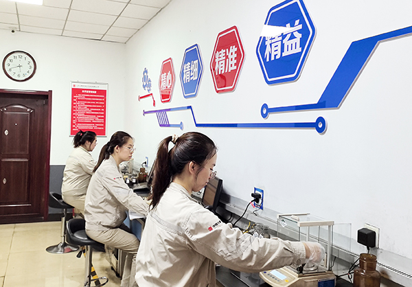 近年来,质检部化验班在班组管理、标准化建设、人才培养等各项工作都卓有成效,化验楼走廊里“班组文化展示栏”默默诉说着这个团队的不凡,班组15年发展历程回顾,班组荣誉、个人荣誉以及班组历年QC科技成果融入班组建设,精细设计了班组莲花托举天平Logo,彰显依法合规与廉洁理念,形成了“一条心、一家人、一面旗、一起拼、一定赢”的班组文化,独具魅力的班组文化墙,生动展示了班组理念、成员风采、科技成果、CNAS实验室、班组发展史等亮点,营造了积极向上,凝心聚力的氛围。巧妙地将沉甸甸的“班组荣誉”——闪耀的奖状、攻坚克难的身影,与推动进步的“班组科技成果”有机融合。