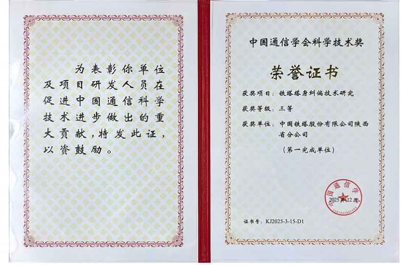 近日,2025年度中国通信学会科学技术奖获奖名单揭晓,中国铁塔股份有限公司陕西省分公司(以下简称“陕西铁塔”)参与的《铁塔塔身纠偏技术研究》项目,凭借突出的技术创新价值与产业应用成效斩获三等奖。作为信息通信领域权威奖项,该奖旨在表彰推动行业科技进步、助力产业升级及服务国家战略的优秀科研成果,此次获奖是对陕西铁塔深耕通信基建技术创新、持续突破的权威认可。