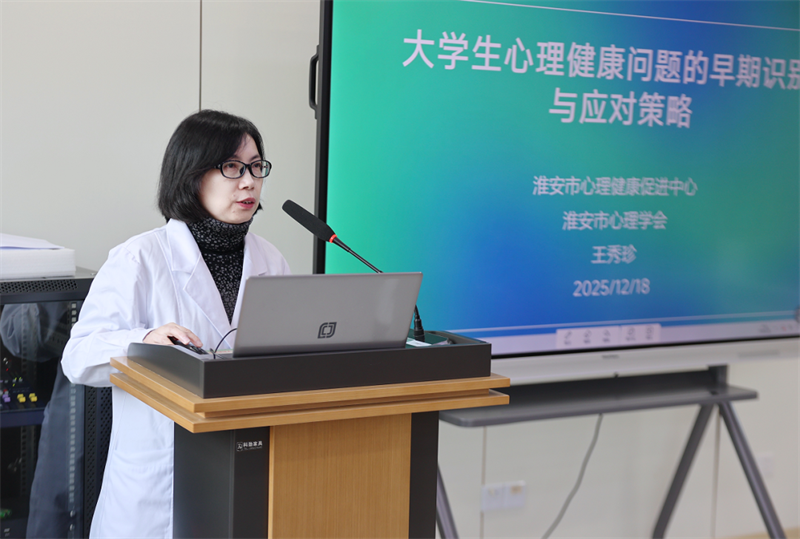 随后,心理科主任医师王秀珍以“大学生心理问题的早期识别与科学应对”为题作专题分享。讲座结合高校学生心理工作特点,梳理了焦虑、抑郁、人际关系等常见困扰的早期表现与辨识线索,讲解了在日常沟通中有效倾听、适时引导的实用方法。分享过程中穿插了经过匿名处理的典型案例,增强了内容的针对性与借鉴意义,现场交流互动频繁,气氛热烈。