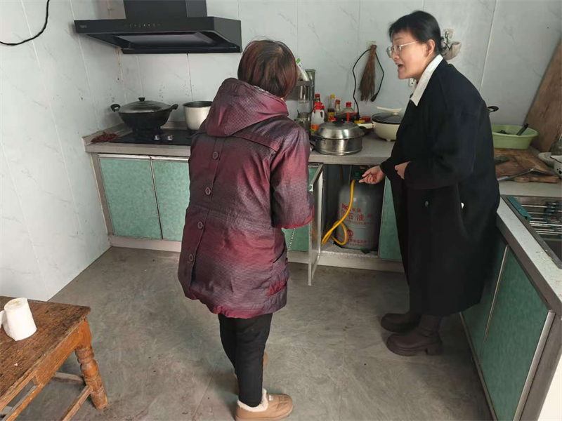 “大叔,最近天气冷,要做好防寒保暖呀!电热器取暖时一定要注意安全,不用时要及时拔掉电源插头。”“大姐,你们做饭用完液化气灶,一定要记得拧紧开关阀门,杜绝发生燃气泄漏,最好安装个燃气防泄漏报警器。”这是龙城镇工作人员在敲门行动中的一幕。工作人员首先向群众发放了安全宣传手册,然后以拉家常的方式与群众亲切交流,耐心细致地向他们讲解家庭用火用电用气注意事项、防止一氧化碳中毒、消防安全、烟花爆竹等安全知识,叮嘱大家日常生活中要时刻提高警惕,加强安全防范,正确规范使用取暖设施,学会开展自查自纠,增强安全风险辨识能力,在日常生活中养成良好的消防安全习惯,不私拉乱接电线,不超负荷用电,外出时要做到“三清三关”,时刻紧绷消防安全弦。