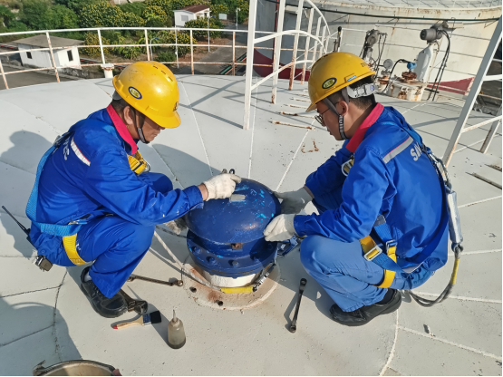 储油罐阻火器是防止外部火源进入罐体的关键安全设备,其完好有效性至关重要。油库维修班对全部在用储油罐的阻火器进行了系统性维护保养。维护工作严格按照操作规程,拆卸下外壳,清理锈蚀部位及金属网上的杂质,确保部件无堵塞、无隐患。清理和防腐后,按标准复原阻火器,保障设备功能完好,有效阻断火源传播路径。
