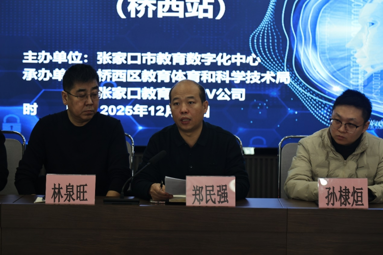 张家口市教育局二级调研员郑民强出席活动并讲话。他指出,教育数字化是推动教育高质量发展的核心引擎,国家战略实施对教育工作者提出更高要求,生成式人工智能技术正深刻改变教育形态。