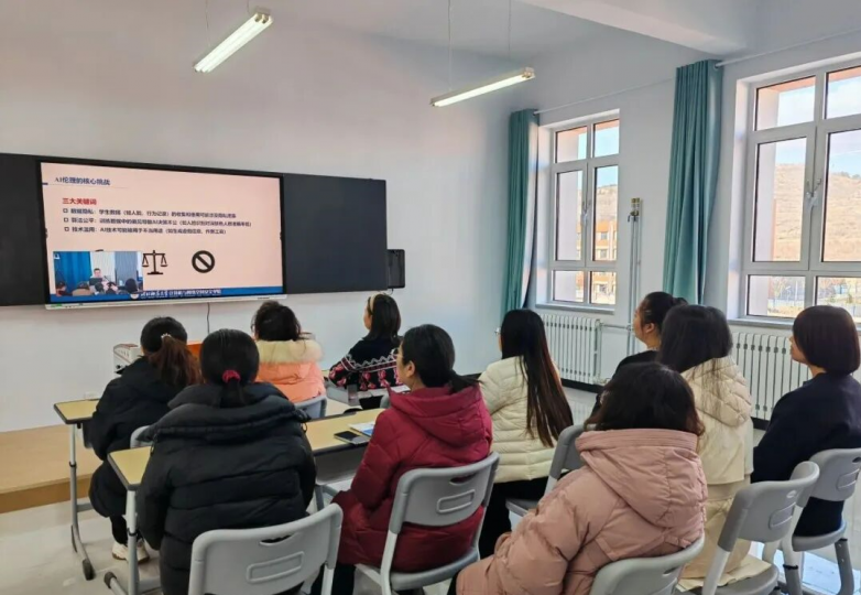 培训核心内容围绕《教师生成式人工智能应用指引(第一版)》展开,聚焦“解读政策、阐明价值、展示场景、警示风险、激发行动”目标。专家结合教育数字化转型背景,解读相关政策要义,阐释生成式人工智能在教学中的应用价值;通过案例演示,展示其在教学设计、资源开发、个性化辅导、学业评价等关键环节的应用场景,提供可复制的实践范例;同时讲解数据安全、伦理规范等风险要点,引导规范安全应用。互动环节中,专家针对性解答教师困惑,有效激发了教师运用数字化技术优化教学的积极性。