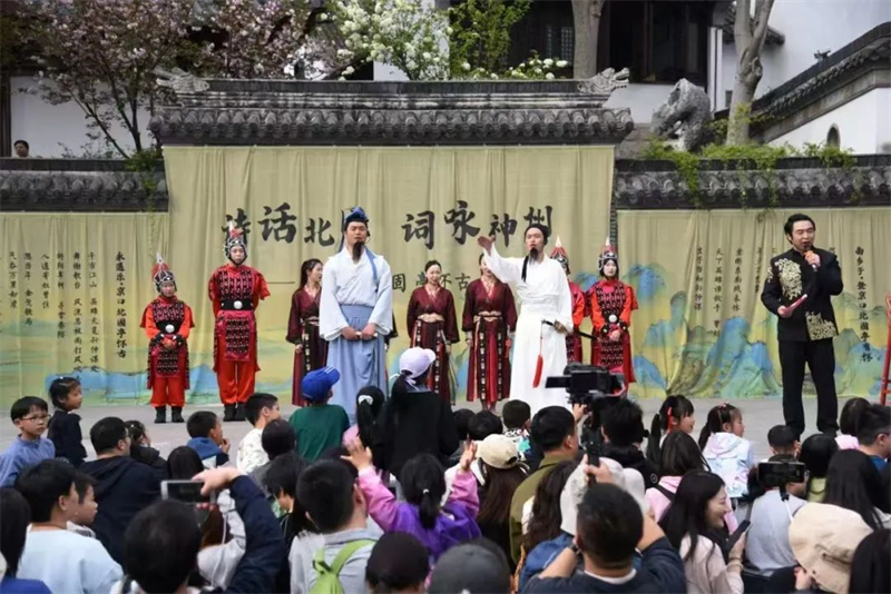 北固山景区的活动同样丰富多彩。《诗话北固、词咏神州》情景剧以辛弃疾登临北固亭的壮阔历史为背景,打造震撼实景情景剧。《刘备招亲》实景演出则再现当年刘备迎娶孙尚香的故事情节和婚礼盛典。表演中,机器人还会端来喜糖,参与互动将有机会吃到“刘备”和“孙尚香”的喜糖。