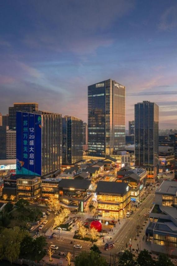 苏州万象天地的启幕,不仅重构了苏州核心区高品质商业综合体的形态,更通过领先的商业内涵注入,让多元业态与文化、艺术、自然相互交融,将当代美好生活的无限想象具象化为可感知、可参与、可共鸣的公共空间体验。