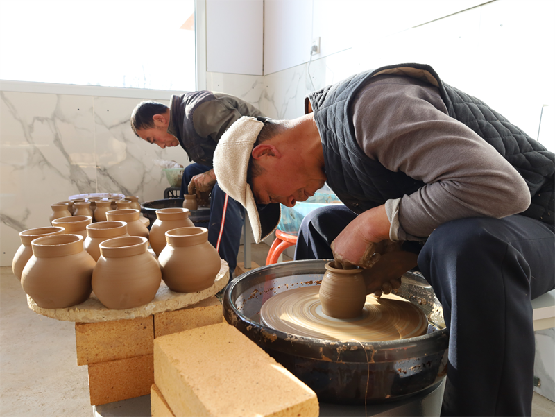 乡土人才正在制作沙坝粗陶产品。刘建军摄
