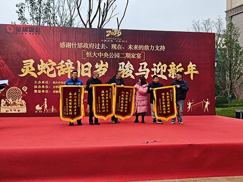 1月3日,雍湖中央公园(二期)全体业主举办交付家宴并向中国五冶集团送上锦旗致谢,锦旗上“奋力攻坚保交付、匠心筑就安居梦”的金字熠熠生辉,不仅是对中国五冶集团专业能力与匠心精神的高度认可,更是对五冶人日夜奋战、精雕细琢的深情礼赞。