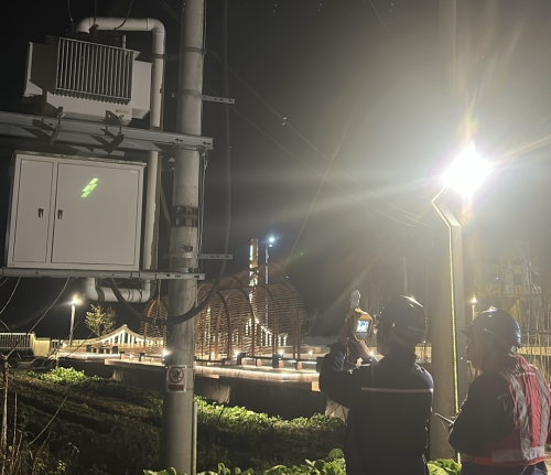 此次夜间巡视聚焦辖区内负荷大、人口密集区域重点线路,以及变电站出口、接头、线夹等关键部位,采用“人工巡检+无人机航拍”的立体巡查模式。地面上,队员们深一脚浅一脚穿梭在山林田间,用手电筒光束划破黑夜,仔细检查绝缘子是否存在污秽放电、导线是否有覆冰挂霜;高空处,无人机携带高清摄像头和测温模块,对杆塔高处和复杂地形区段进行全方位扫描。每到一处,队员们都详细记录设备运行数据,对发现的隐患建立“一患一档”,确保及时闭环处置。