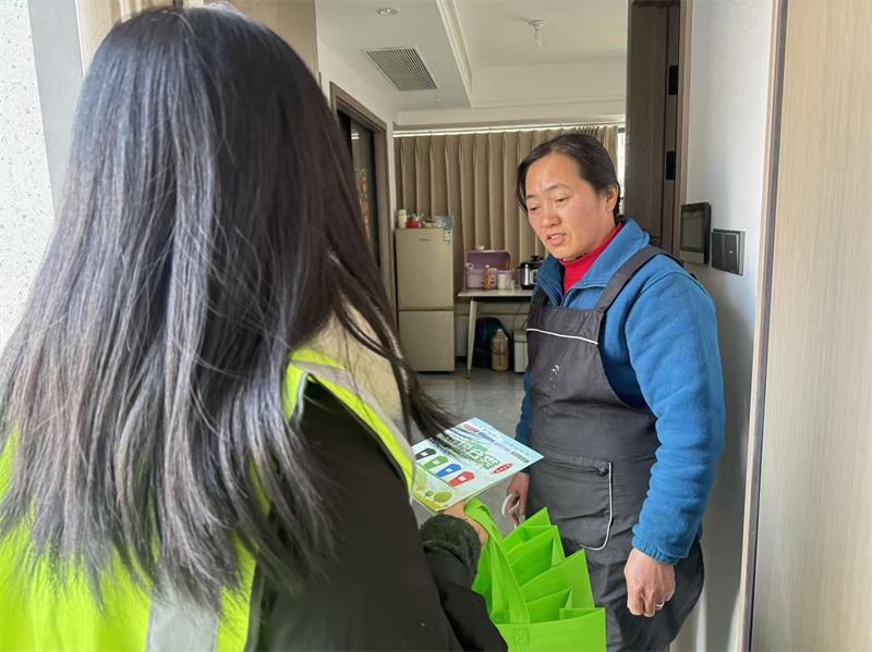 掌握关键,举手之劳成习惯,2026年1月8日,杭州萧山衙前镇宣传员在春镜前潮府挨家挨户的说着:请您在家中设置“两桶一袋”,按照以下标准进行初步分类: