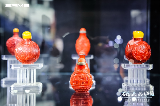 在精品展区,一组材质各异的鼻烟壶引来众多收藏爱好者驻足。玛瑙的温润、水晶的剔透,结合鬼斧神工的内画技艺,将大千世界收纳于方寸瓶身。这种从天然赏石到人工精雕的展示逻辑,立体呈现了东方文化中“天人合一”的美学脉络。