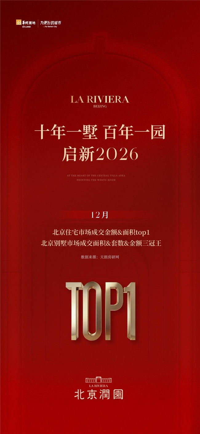 2025年末的北京楼市,被一个现象级表现所定格。北京润园不仅在12月登顶北京全市住宅成交金额与面积的“双料榜首”,更一举包揽别墅市场面积、套数、金额的“三冠王”。以绝对实力重新定义了别墅新纪元。