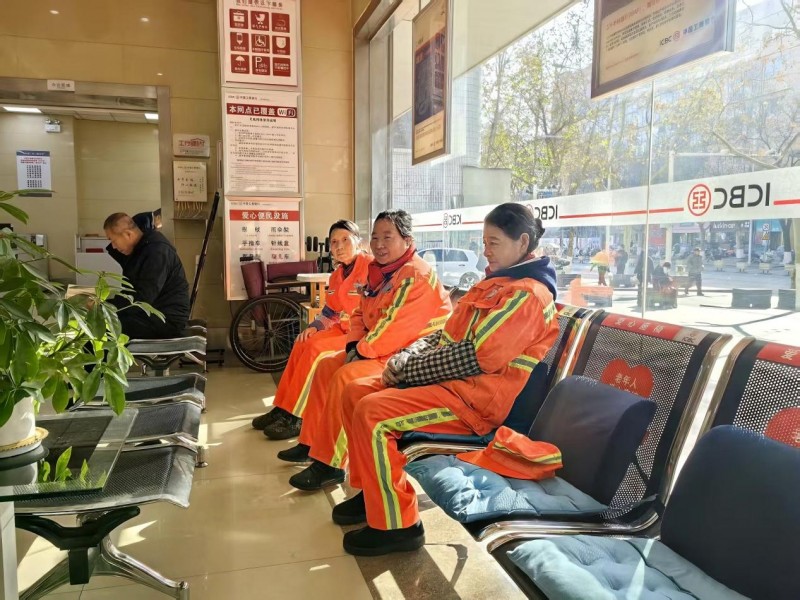 “以前干活累了,只能在路边树荫下坐一会儿,现在有了专门的临休点,能坐着喝口水、歇一歇,心里特别暖。”在工行宝鸡渭滨支行临休点休息的环卫工人刘师傅笑着说道。这份来自社会各界的体贴与尊重,让像王师傅一样的许多环卫工人感受到了实实在在的关怀。