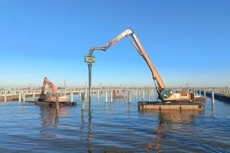 超大面积水上施工与复杂地质条件,对项目管理提出了极高要求。项目全面推行“网格化+智慧化”管理模式,将现场科学划分为3大工区,实行三级责任包干。通过智慧工地平台实现进度、人员、设备、安全状况实时可视与智能预警。每日召开调度会,推进节点销项,确保各工序高效衔接。面对物资需求集中的挑战,项目创新构建“驻厂催交+区域调剂+工艺优化”协同保障机制,安排专人紧盯PHC管桩等关键资源,实现跨区域、跨项目的动态灵活调配,确保了施工节奏与物料供应精准匹配,为工程连续高效推进奠定了坚实基础。