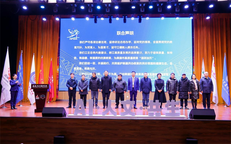 活动现场,12所联盟成员校共同发表联合声明,承诺严守法律法规,坚持党的领导,落实立德树人根本任务,立足内涵发展、强化品牌意识,携手维护南通民办教育良好生态,为区域教育高质量发展添砖加瓦。
