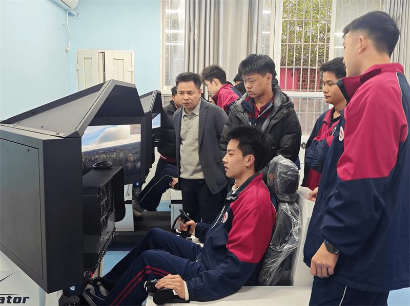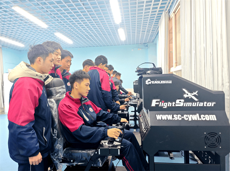 近日,在赤水一中一间特别的教室内,引擎低鸣与虚拟气流声交织回荡。学生李墨涵进行着他的第三次飞行模拟考核,眼前是1:1复刻的逼真苍穹与大地,手中是灵敏回馈的操纵杆,每一次爬升、转向都让他感觉离蓝天梦想更近了一步。