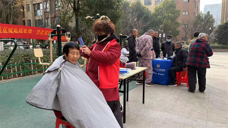 便民服务专区内,免费磨刀磨剪子、理发两大服务项目有序开展。党员志愿者驻点协调,专业师傅耐心细致地为居民打磨钝损的菜刀、剪刀,让旧工具重焕锋利;理发志愿者则细心为老年人、行动不便居民及有需求的群众修剪发型,一个个清爽的造型让大家精神面貌焕然一新。党员志愿者全程引导“窗帘之约”服务对象有序排队,协助他们沟通需求,确保便民服务精准落地。