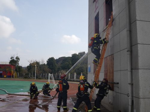 “松土施肥”,严抓实战演练修预案。大队紧扣“提质强能”核心目标,树牢练兵“主责主业”意识,把全员岗位大练兵活动作为提升队伍整体能力素质的重要抓手,组织全市17个队站开展执勤岗位练兵技能竞赛及体能普考;结合冬训工作,每月下发训练科目指南,并针对每月指定科目开展体能对抗赛,检验训练成果。针对冬季火灾特点,修订完善各类火灾事故应急预案,组织开展实战演练,重点加强高层建筑、大型综合体等重点场所的灭火救援演练,提升队伍协同作战和应急处置能力。