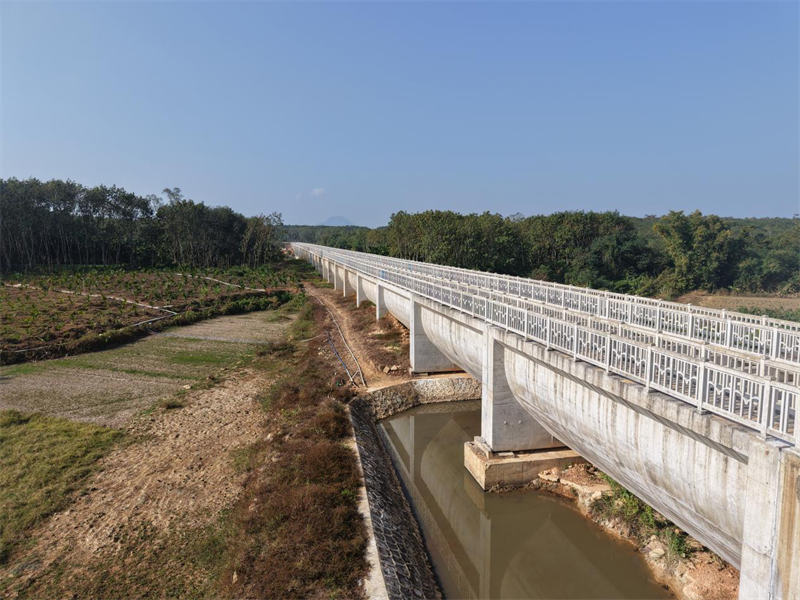 为切实保障人民群众生命财产安全并提升区域水安全保障能力,建设滋养沿线群众的“幸福渠”。2022年1月6日,松涛东干渠改线工程正式开工。在满足原供水规模的前提下,该工程将原松涛东干渠那大分水闸至和庆电站段9.6千米长的渠道改线至城外。改线后新建渠道总长8.12千米,设计流量为38.3立方米/秒。工程沿线共布置5段明渠、3座渡槽、4条隧洞、7条暗涵、2座机耕桥、1座倒虹吸、7座水闸以及新增排洪渠等附属建(构)筑物。