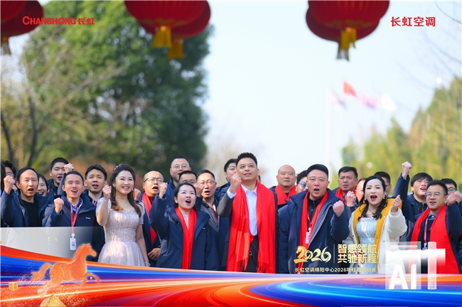 聚力长虹、冷暖同心,聚焦转型、义无反顾,激情奋进,荣耀未来!绵阳空调中心全员昂扬斗志、上场宣誓,誓言铿锵,彰显初心;字字千钧,凝聚力量!总经理丁杨领誓,带领团队向所有合作伙伴庄严承诺:"全力以赴,使命必达,与各位经销商朋友同舟共济,决胜2026!!震撼人心的宣誓,不仅是团队的庄严宣誓,更是对客户郑重承诺!相信在这样一支有信念、有担当、有干劲的团队护航下,2026年与经销商朋友们一马当先闯新程、马到成功定乾坤。