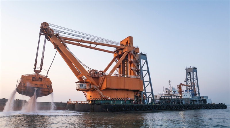 高效环保克硬岩!世界最大抓斗挖泥船“金广”助力防城港港30万吨级进港航道建设