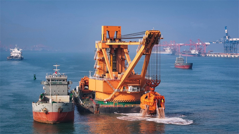 “以前爆破清礁,光是安全警戒和硝烟消散,就要耗去大半天,日均开挖量仅1500至2500立方米。现在有了‘金广’,日均开挖量直接提升至8000至11000立方米,一天就能干完过去三天的活儿!”刘正谦笑着说,这艘船的施工效率达到传统抓斗船的3至5倍,效率与精度的双重提升的背后,是对海洋生态的坚实守护,更是“世界第一抓”的实力彰显。