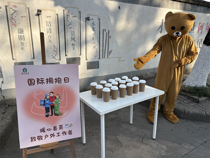 国际拥抱日暖意在行动 社区志愿者派送红枣姜茶致敬户外劳动者