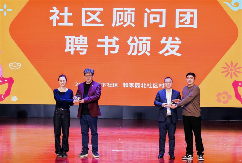 活动现场星光璀璨。主持人阵容强大,《明珠新闻》的臧锦宜,曾获浙江省电视播音一等奖且是最年轻获奖者;“阿六头”安峰以亲切本土话语,瞬间点燃现场氛围。杭州本土网红“悟空小碎嘴”带来杭州方言表演,杭州联合银行留下支行行长谢智威、名嘴时评员俞柏鸿作为社区顾问团代表亮相,为村晚增添别样活力。杭州博物馆文化特派员陈姣燕也来到现场,分享扎根基层的文化实践。她推动“闹忙的乡村留下荡荡儿”教育展览落地,挖掘非遗文化、拍摄短视频,还开展“杭州人的第一课”等活动,为基层文化建设贡献专业力量。