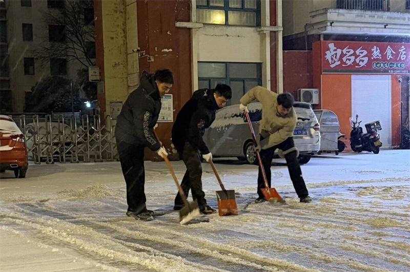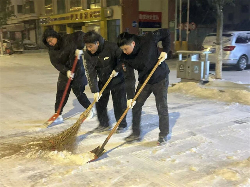 19日午夜 12时,20名干警准时集结,手持扫帚、铁锨等工具奔赴包干区,在夜色中全力清扫路面积雪。为确保扫雪工作持续高效推进,法院制定轮班机制,自20日清晨6时,又安排 100余名干警接力作业,做到积雪不清、扫雪不停。