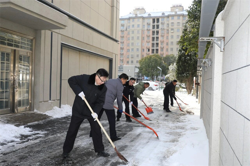 风雪中的温情守护,涟水法院干警开展扫雪除冰行动