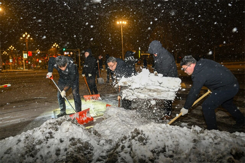 雪情就是命令,畅通就是责任。深夜时分,园区党工委书记崔步银靠前指挥,第一时间研判雪情态势、召开紧急部署会议,按照“以雪为令、即下即清、雪停路净”目标,迅速组建由各部门、各单位负责人牵头的应急扫雪队伍,科学划分责任区域,足额调配铁锹、扫帚等应急物资,确保扫雪除冰工作快速落实、有序推进。