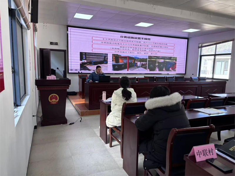 此次培训紧扣鸠坑乡实际,精准对接新任村干部工作需求,摒弃生硬理论灌输,采用“政策解读+案例剖析+实操指导+互动答疑”的模式,让培训内容既“有高度”又“接地气”。乡生态办工作人员结合前期“小手拉大手”垃圾分类推广成效,系统讲解了可回收物、有害垃圾、易腐垃圾、其他垃圾的四分类标准,重点针对乡村常见的农药包装、废旧农膜、秸秆、畜禽粪便等特殊垃圾的处置规范进行细化说明,用“能卖钱的分一类、能堆肥的归一类、有毒害的单独放、无用处的集中收”的通俗表述,帮助村干部快速掌握分类要点。