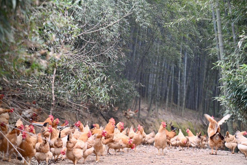 同土鸡相处时间长了,他发现土鸡有通人性的地方。由于在200亩竹林深处采用散养的方式,又没有围栏和围网,鸡群万一走散、丢失怎么办?小鸡孵化后,他就把它们在鸡舍内关养三天便形成“归巢”记忆,确保放养后每天黄昏时分都能自觉归巢。