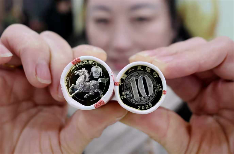 2026年1月20日,在工商银行扬州分行营业部大厅,一位市民喜悦地展示刚刚兑换到的2026年贺岁纪念币与纪念钞。