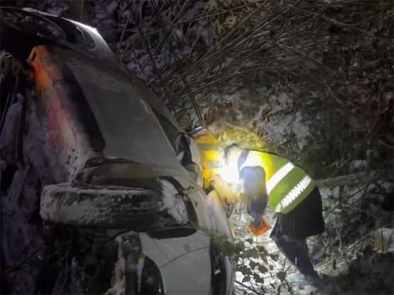 当时,湖北全省已启动低温雨雪冰冻应急响应,恩施山区气温跌至-4℃以下,一辆轿车在恩施山区下山途中失控侧翻,坠入8米深的陡峭山沟,车内3人受伤送医,受损车辆被困于积雪沟底,面临山路封路和滞留风险。