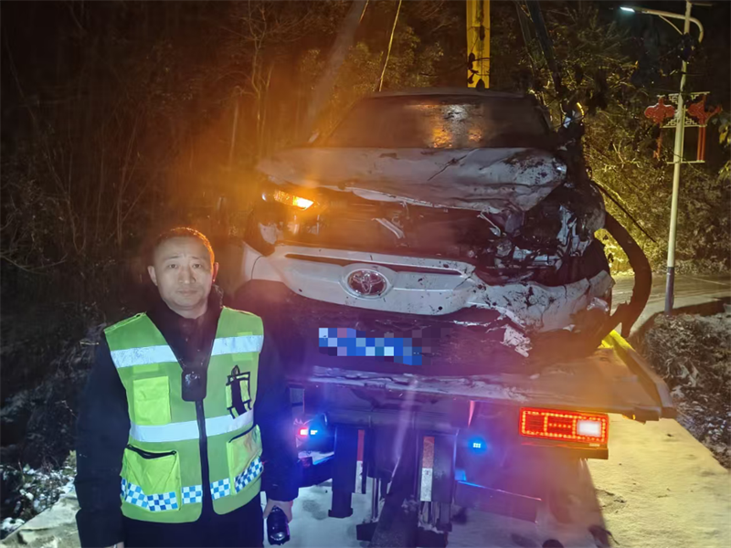 中国太保产险湖北分公司查勘员王勇接到电话后当即回应:“您别急,我们马上出发。”随后,他迅速整理头灯、救援设备等装备,顶着凛冽风雪赶往事故现场。