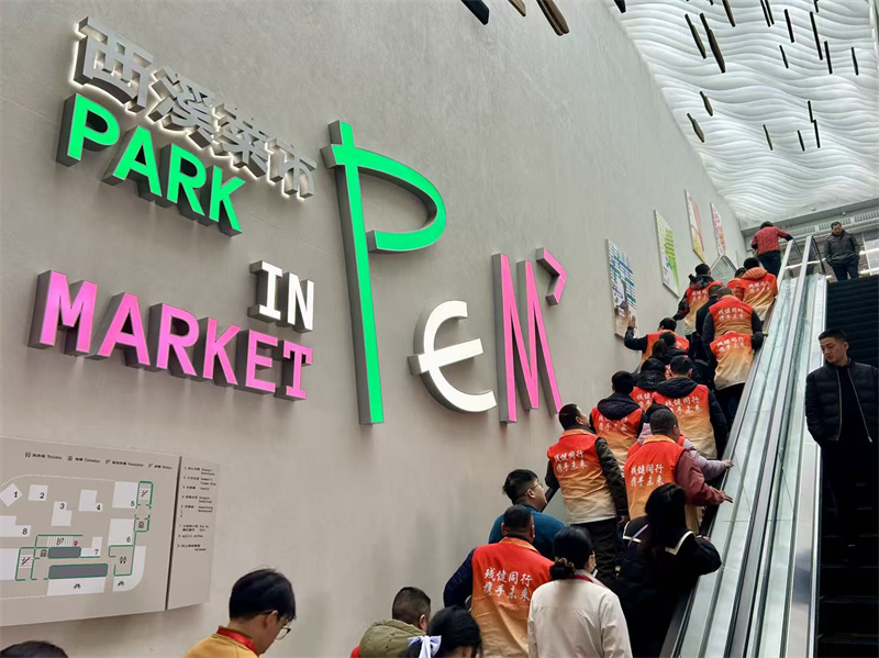 菜场,向来是城市烟火气最浓郁的地方。作为湿地风情融合非遗元素的新型城市菜市,西溪菜市的特色场景让学员们充满好奇。上午9时30分,学员们准时在蒋村街道残疾人之家出发,在带队志愿者的陪伴下,步行前往西溪菜市。在工作人员的引导下,大家先参观了一层商业区与二层农贸市场,精致糕点、鲜活水产,还有随处可见的非遗装饰,让学员们不时发出称赞。
