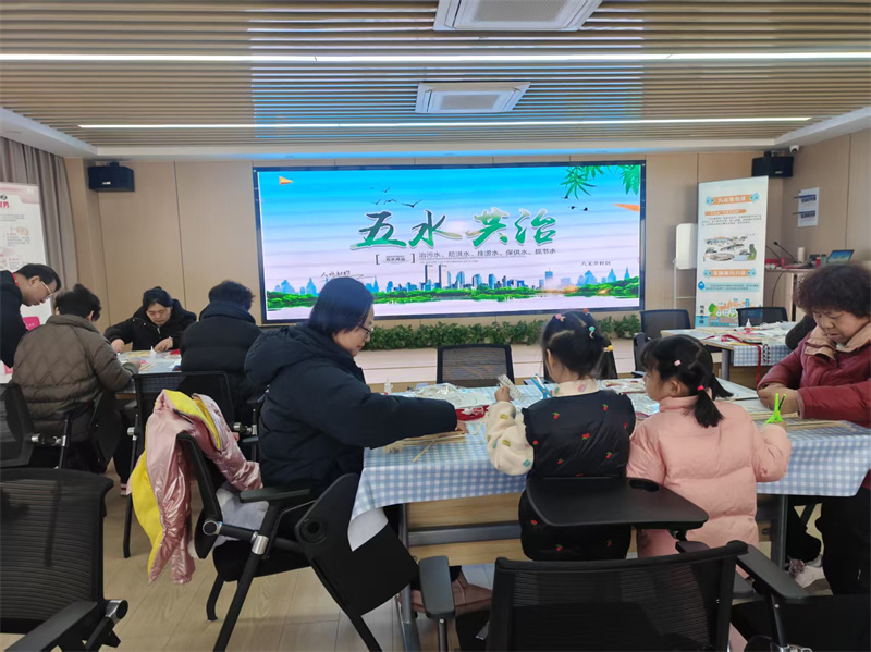 1月21日,杭州市拱墅区上塘街道八丈井社区内洋溢着浓厚的环保与创意氛围。一场以“五水共治”为主题的环保手工宣传活动在此温馨举行,吸引了社区不同年龄段的居民踊跃参与,大家用手工创作传递治水理念,在实践中深化节水、护水的环保意识。