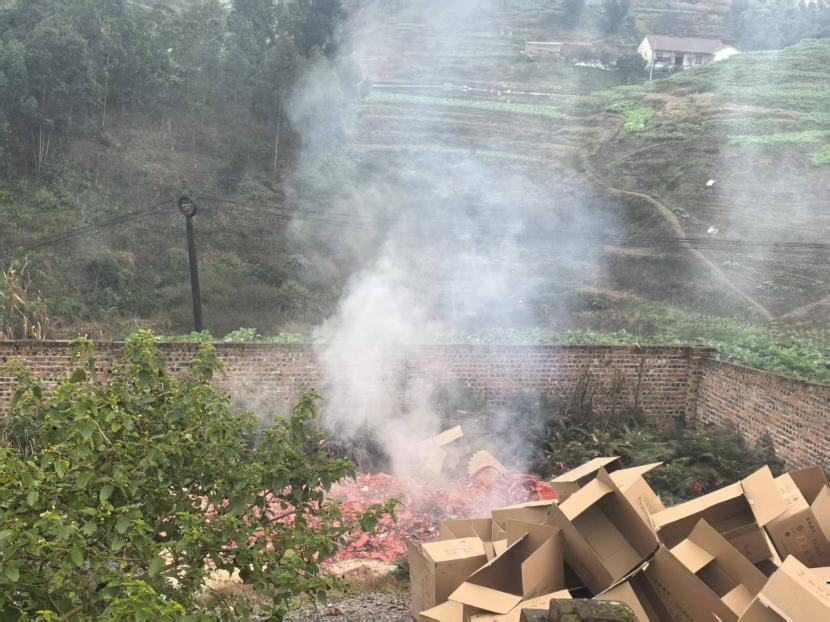 宜宾市南溪区市场监管局集中销毁一批不合格烟花爆竹