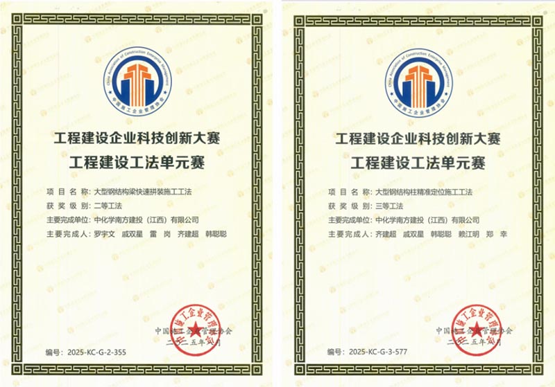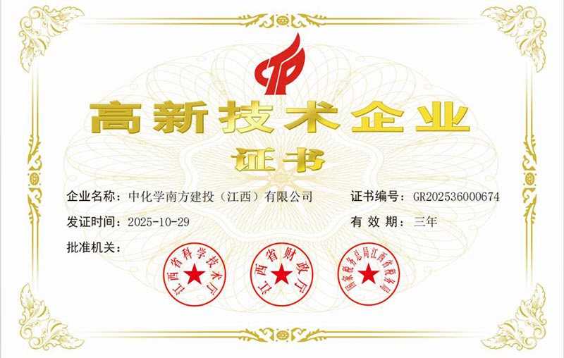 日前,中化学南方建投(江西)有限公司通过国家高新技术企业重新认定。在技术成果方面,五项发明专利获得正式授权,两项省级工法在中国施工企业管理协会的行业评选中分别荣获二等奖和三等奖。一系列核心成果的落地,勾勒出一条清晰的创新轨迹,标志着公司以科技创新驱动高质量发展迈出坚实步伐。