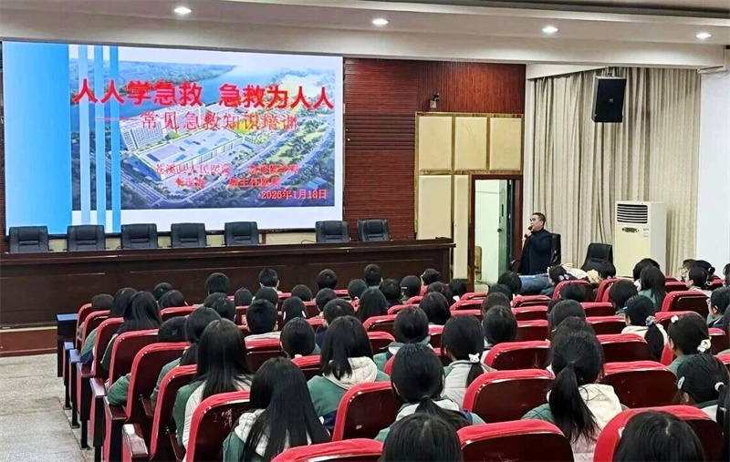 在国家急救日来临之际,为切实提升师生应急自救与互救能力,守护青少年生命健康,四川省苍溪县人民医院急诊科医护团队组成专业科普小队,走进当地城郊中学,成功开展了以“人人学急救,急救为人人”为主题的急救知识宣讲活动,为校园安全注入专业守护力量。