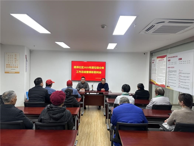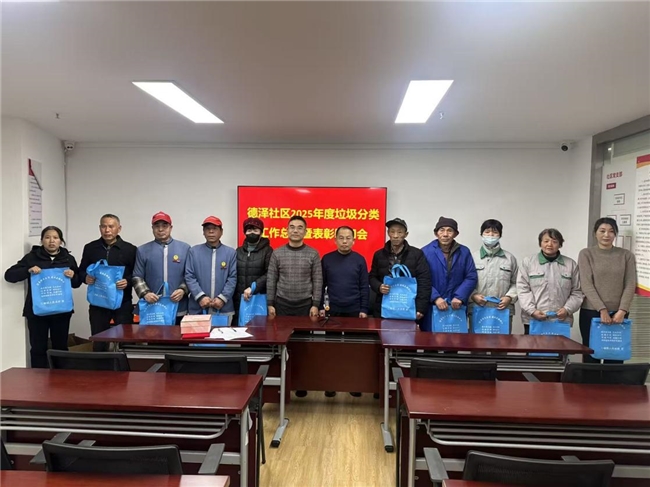 这日,天空飘着雪花,天气极冷,德泽社区会议室里却很暖。为总结过去,展望未来,表彰先进,传递温暖,杭州市西湖区三墩镇德泽社区隆重召开了2025年度垃圾分类工作总结暨表彰慰问会。社区书记、10名垃圾分类志愿者齐聚一堂。